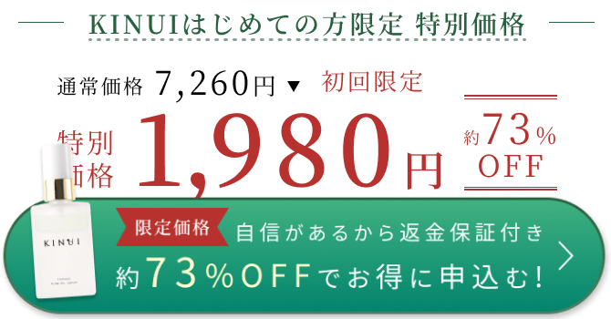 一方、KINUI美容液は初回割引があり、初めて使う方には特におすすめです。